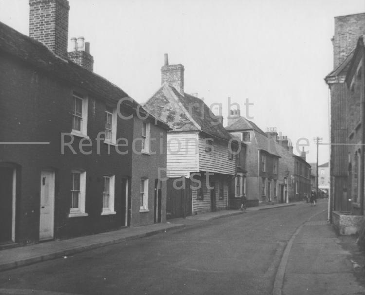 Sewardstone Street in 1957. All the houses on the left of the street were demolished during the Town Redevelopment Scheme. The houses on the right remain, although they have been slightly altered.