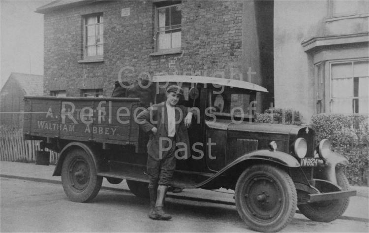 The Chevrolet lorry of Arnold Cutler, Coal Merchant from Broomstick Hall Road. Picture taken in Harold Road c1932. Harold Road was opposite the marshes nut no longer exists. The area is now part of Holdbrook. John Smith, driver and coalman is seen in the picture.