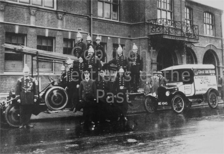 Capt. George George and crew with Waltham Abbey Volunteer Fire Brigade's first motor fire engine. It was found to be one and a half inches too wide to fit in the Town Hall Fire Station. Picture 1923.