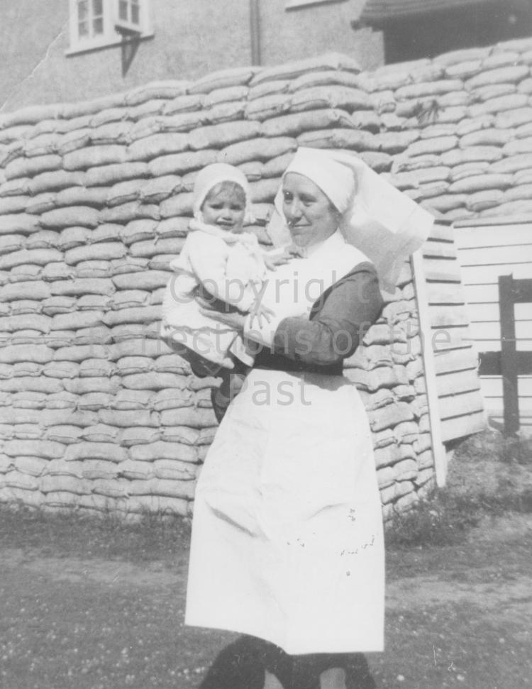 Matron Dorothy Lockwood outside the sandbagged War Memorial Hospital, Farm Hill Road in 1939.
