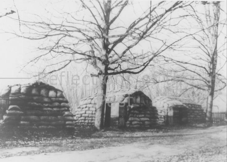 World War One air raid shelters, built for workers on the South site of the Royal Gunpowder Factory. This picture, c1914.
