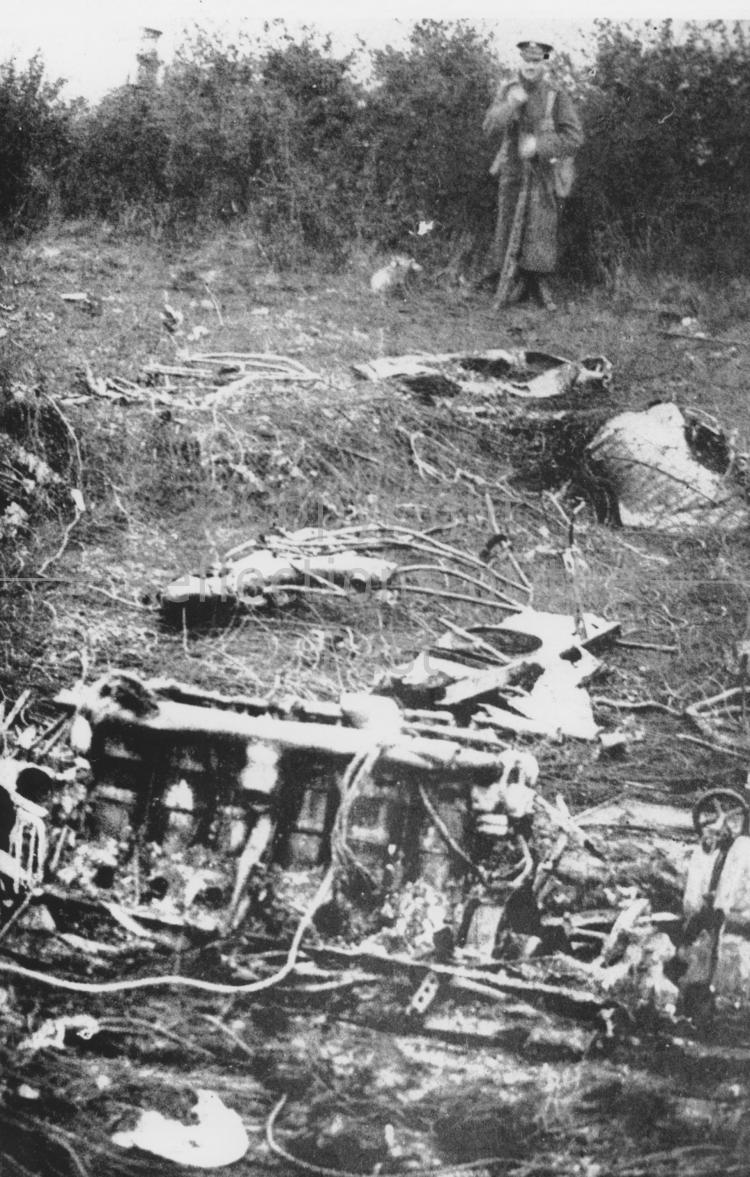 The wreckage from the Cuffley Zeppelin is spread over a large area. Shot down by William Leefe Robinson on the 3rd September 1916.