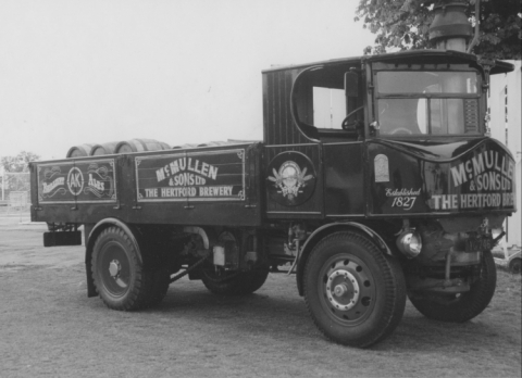 A McMullens Sentinel Steam Beer Delivery Wagon, pictured in 1985. View Beer Wagon