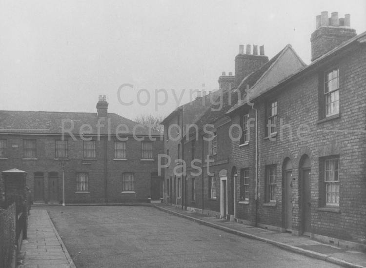 Paradise Row and Paradise Road before the redevelopment scheme. The houses on the right (Paradise Road) were demolished in the early 1960s. Those from the left to centre (Paradise Row) were refurbished and remain today.