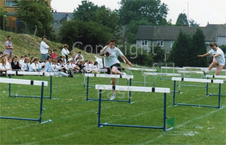 Girls Hurdles Race. Mr Job can be seen in the background. Date and further details needed.
