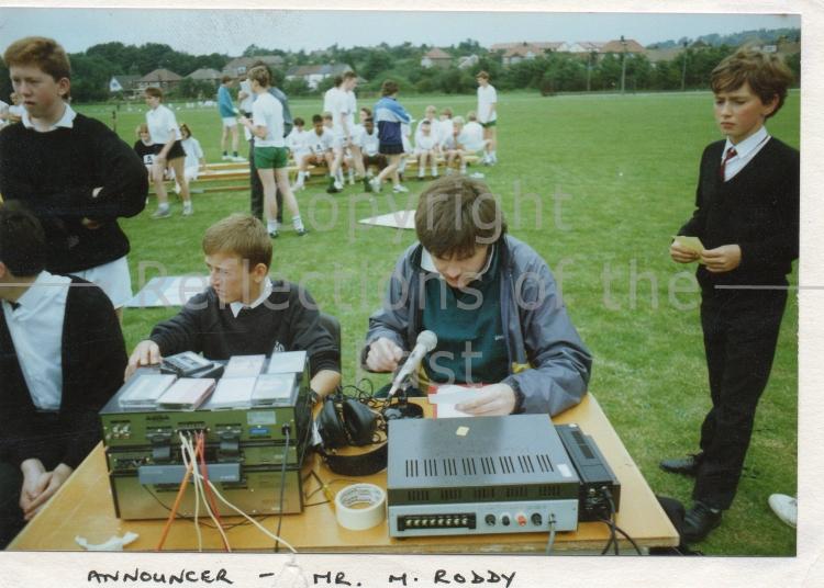 Mr Roddy takes his turn as announcer on sports day. Date and further details needed,