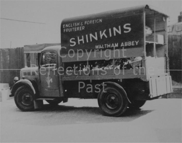 Ernest Shinkins fruit and grocery delivery van. His shop was at 24 Highbridge Street. David Slee and Ralph Barnard will be remembered as salesmen on this lorry. Picture c1955.