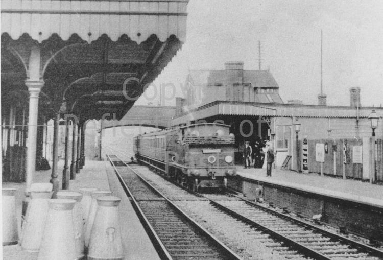 When it first opened in 1840, this station was called Waltham Cross and Abbey, but today it's just Waltham Cross. The train is on its way to Liverpool Street station. Note the milk churns on the other platform. Picture c1930.