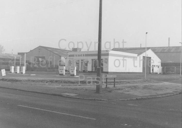 A Texaco garage built on the corner of Denny Avenue. Built in the 1960s to replace Bond's Garage in Sun Street, which was demolished to make way for the Quaker Lane extension and pedestrianisation of Sun Street. This picture c1982. Tescos now have a petrol station near this site.