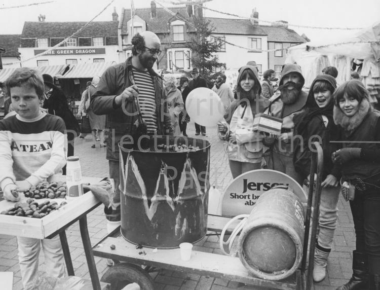 Roasting Chestnuts in the Market square during the Rotary Club's Christmas Extravaganza. Picture, December 1984.