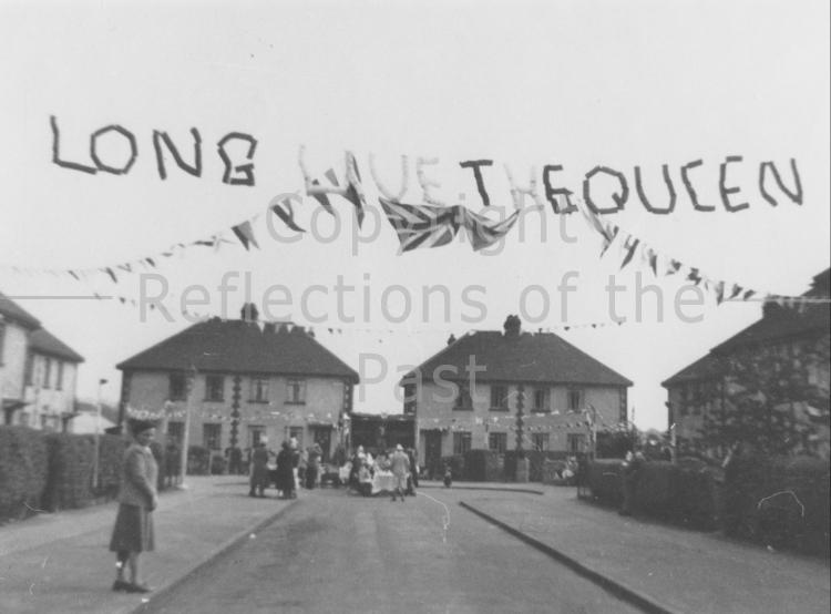 A Coronation Street Party at Webster's Close, Upshire. Celebrating the Coronation of Elizaberth 2nd, June 1953.