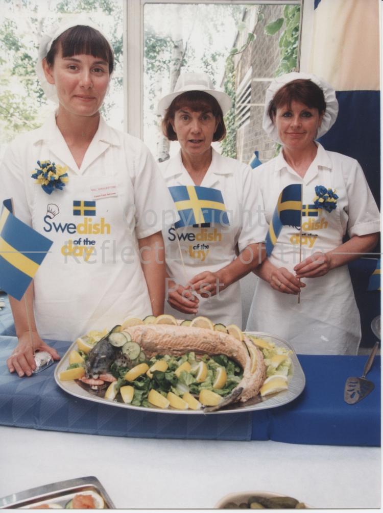 Our kitchen staff present part of their mouthwatering Swedish menu, to staff and pupils at their prizewinning lunch.