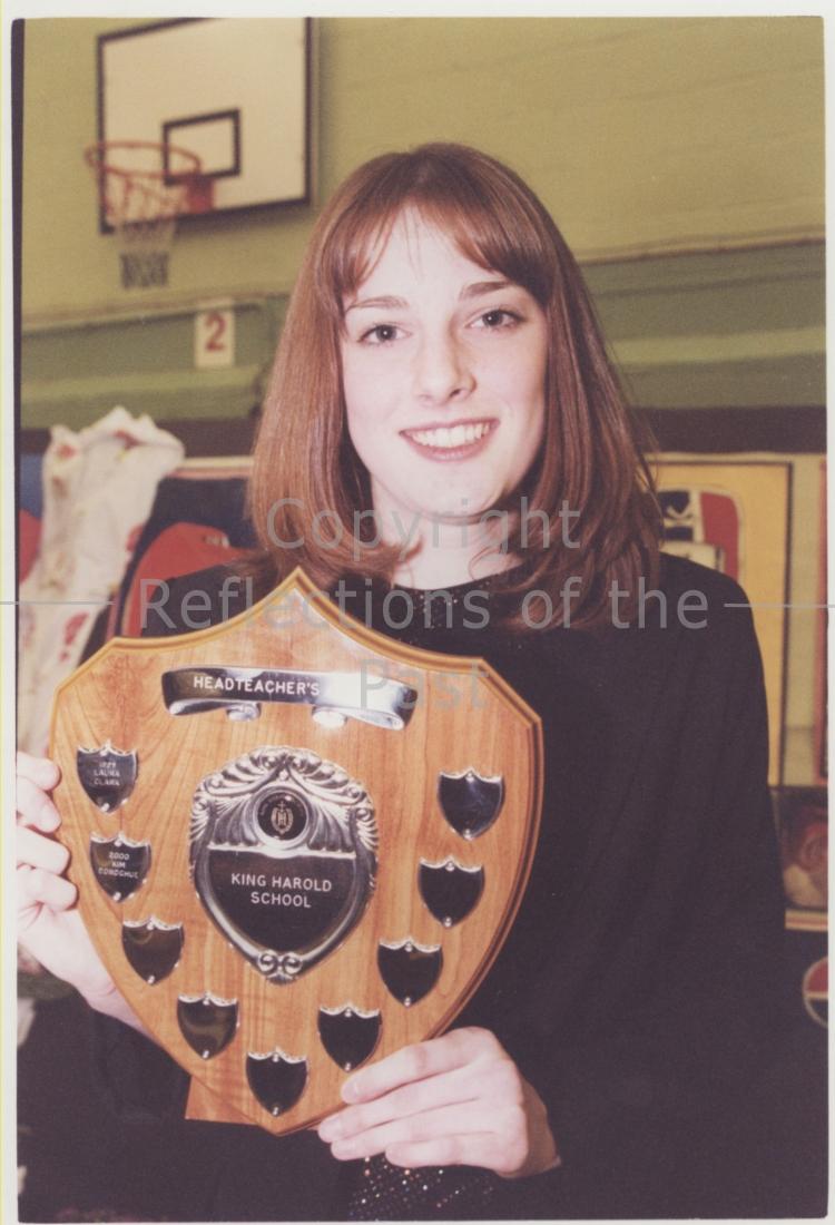 A Student receives the Headteachers Award at our annual presentation evening. This event took place in the school's sportcentre for a number of years, which is where this picture was taken.