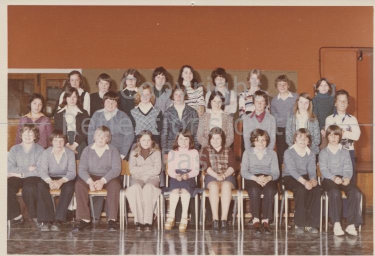 Class photo taken on the stage in the school hall. Class and students names needed.